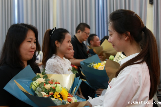 在音诗画《师者如光》的深情演绎中,师生共同重温校园点滴。毕业生代表向教师、家长和校园服务保障第三方代表献花,表达真挚谢意。